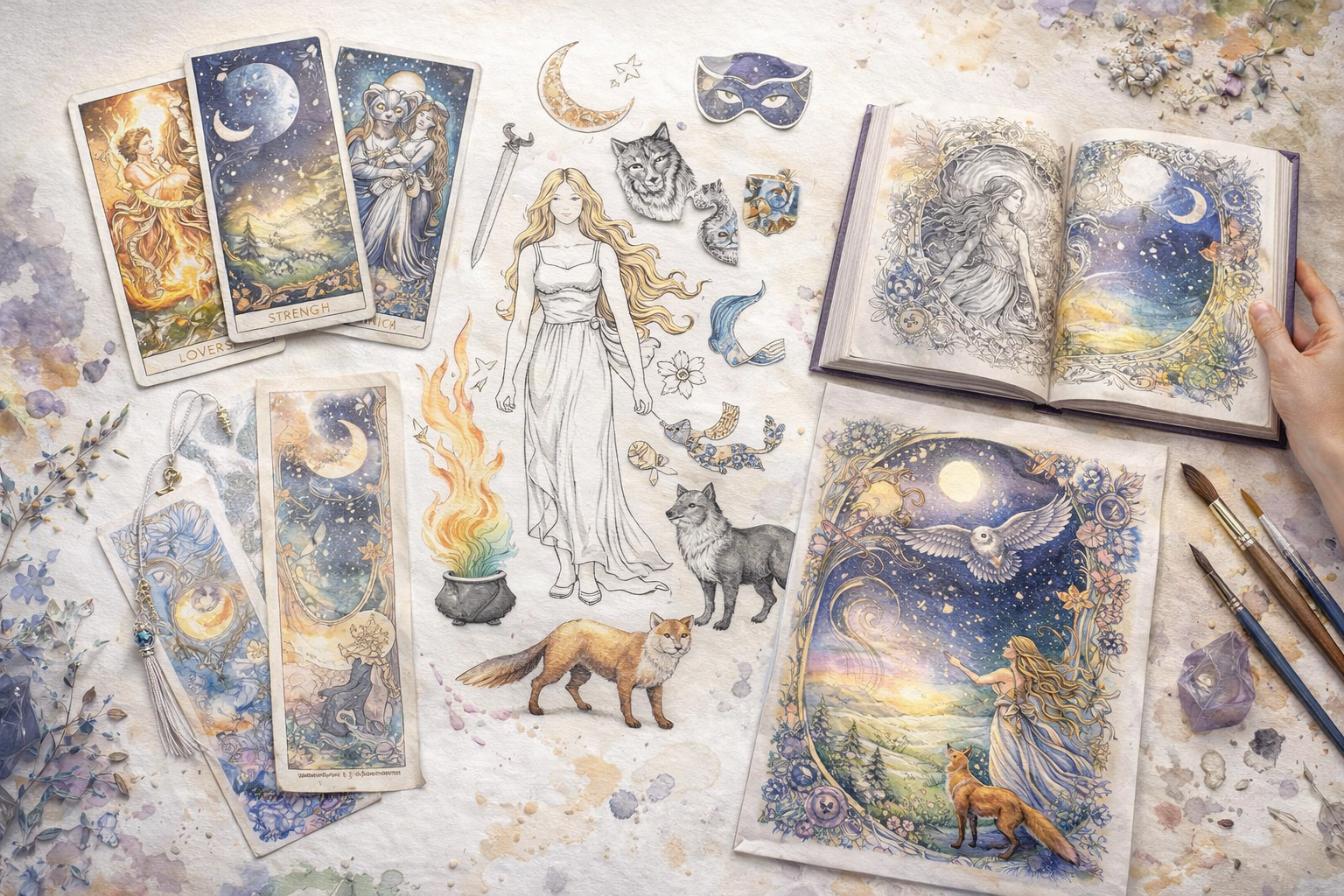 Paper Doll + Mask + Tarot Card + Bookmark